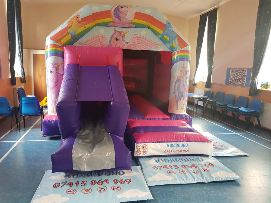 To book Unicorn Bouncy Castle Slide Combo Castle please use our online enquiry form you can even check its availability against our live diary! Our online booking system collates all the information we require and we will confirm your details with a phone call. Or if you have any questions about this or any other bouncy castles or any of our other equipment or services we offer call us now on 07515 695973 or email info@kidaround.co.uk